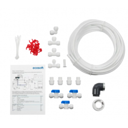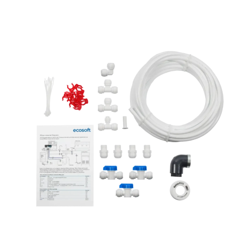 Ulepsz swój system uzdatniania wody dzięki zestawowi przyłączeniowemu Ecosoft RObust – gotowemu do instalacji akcesorium zaprojektowanemu specjalnie do łatwej integracji z systemami odwróconej osmozy Ecosoft RObust. Stworzony dla wygody i niezawodności, zestaw ten pozwala łatwo podłączyć system RObust do zbiornika ciśnieniowego (przyłącze ¾″) oraz do trzech urządzeń – bez kleju i dodatkowych narzędzi. Ten prosty zestaw ułatwia montaż i optymalizuje instalację wodną w precyzyjny i wygodny sposób.