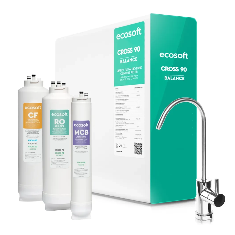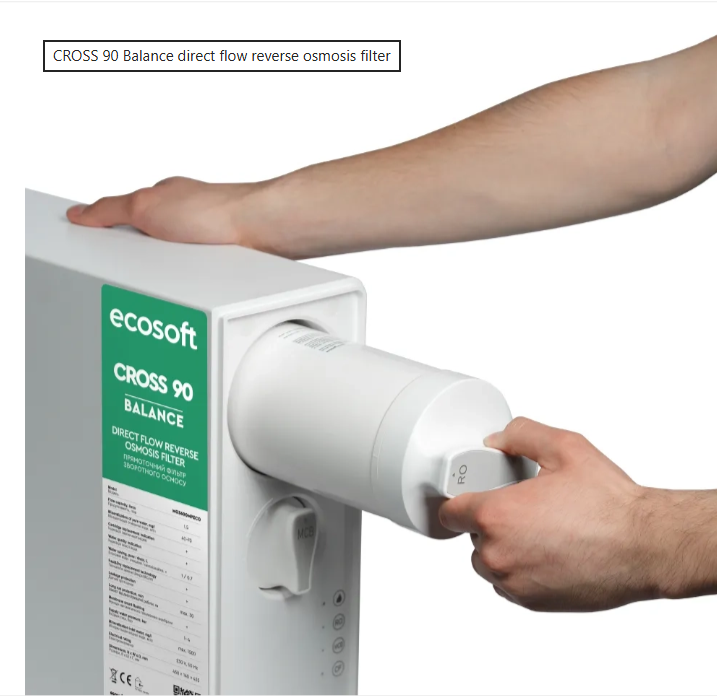 Kompaktowy system uzdatniania wody CROSS 90 Balance Ecosoft to wysokowydajny filtr wody odwróconej osmozy z wydajnością do 90 litrów na godzinę!