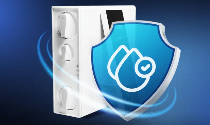 Ochrona przed wyciekiem: Filtr automatycznie odcina dopływ wody w przypadku wykrycia jakichkolwiek nieszczelności wewnątrz filtra.